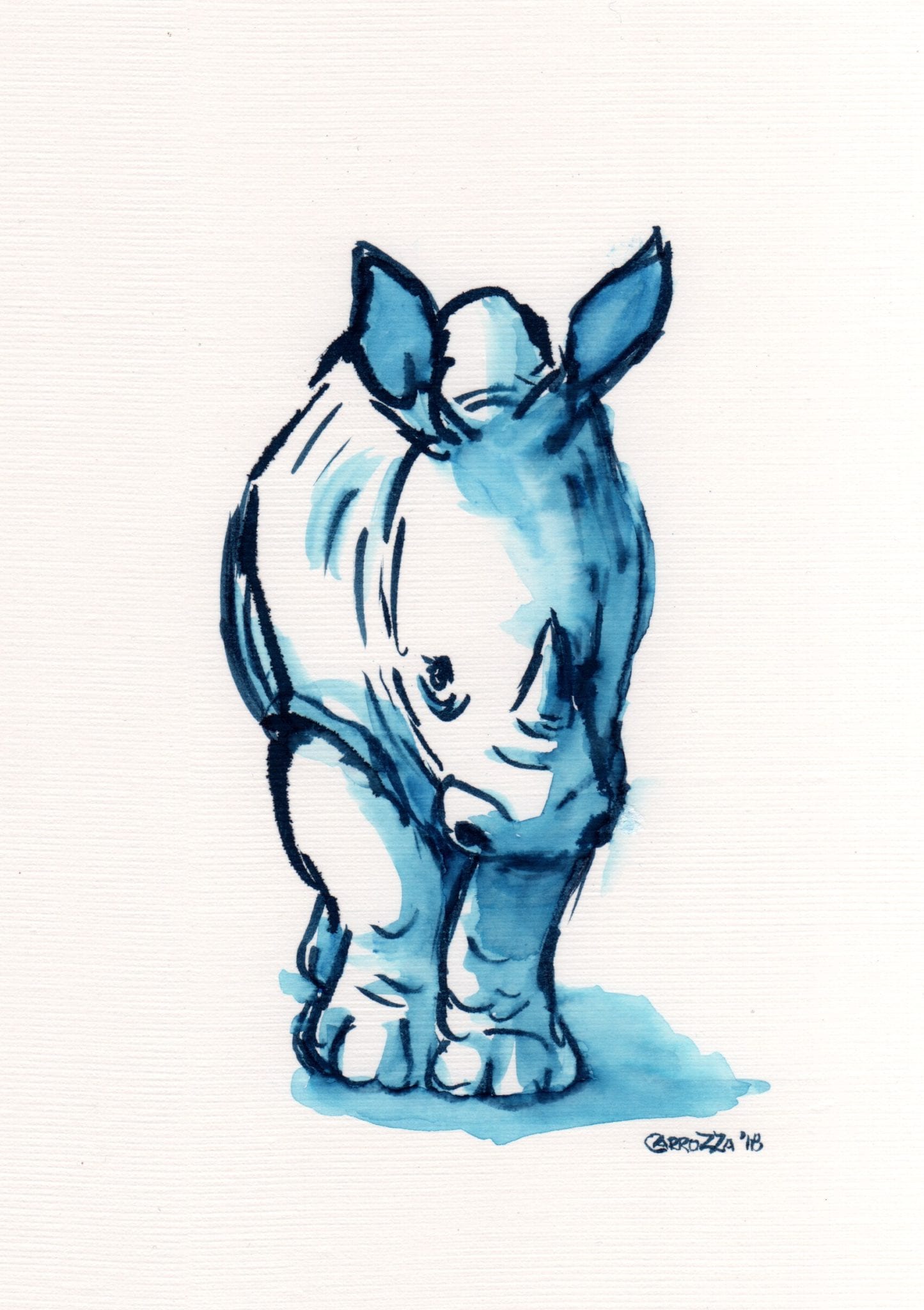 Pen and Wash Blue Rhino 2
